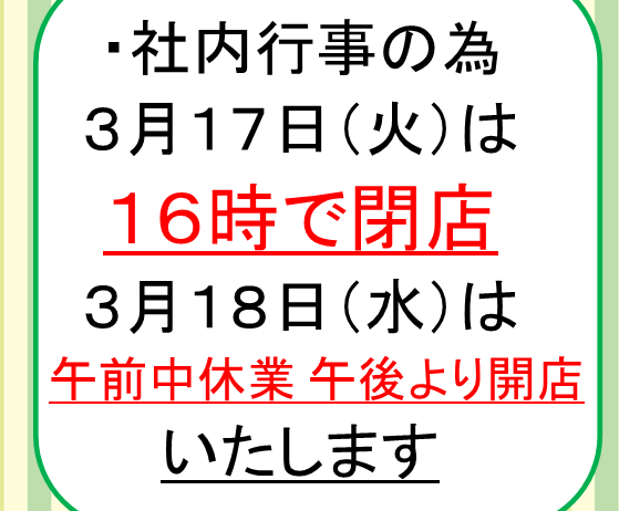 営業時間変更のお知らせ